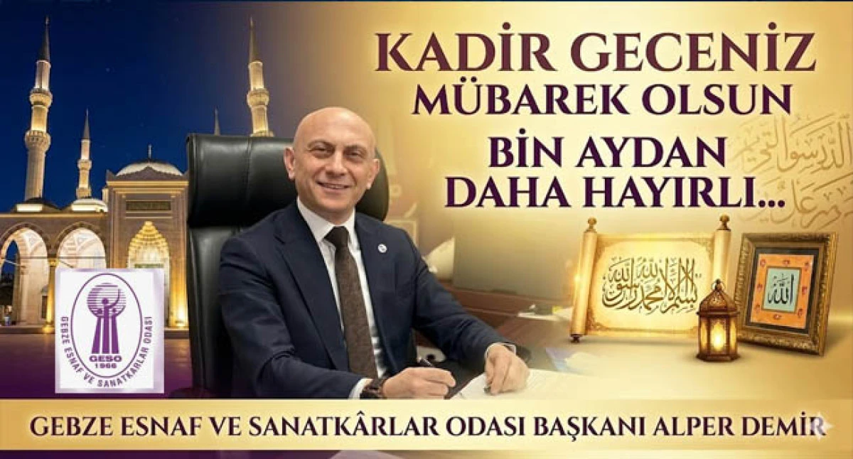 GEBZE – Gebze Esnaf ve Sanatkârlar Odası Başkanı Alper Demir, Ramazan ayının kalbi hükmünde olan ve Kur'an-ı Kerim’de "bin aydan daha hayırlı" olduğu müjdelenen Kadir Gecesi münasebetiyle yazılı bir açıklama yaptı. Demir, mesajında birlik, beraberlik ve bereket vurgusu yaptı.