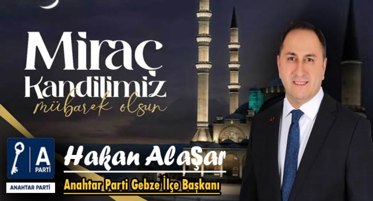 Akşamı idrak edilecek Miraç Kandili dolayısıyla mesaj yayımlayan Anahtar Parti Gebze ilçe başkanı Hakan Alaşar,Miraç Kandiline ulaşmanın mutluluğunu yaşadıklarını belirterek, manevi gecelerin, insanlar arasındaki dostluk, barış ve kardeşliğin gelişmesinde büyük katkısı olduğuna değindi.