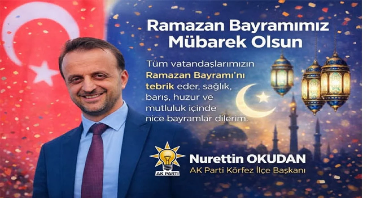 AK Parti Körfez İlçe Başkanı Nurettin Okudan, Ramazan Bayramı dolayısıyla yayımladığı mesajda, Körfez halkının ve tüm İslam âleminin bayramını kutladı. Mesajında "Gönül Belediyeciliği" ve toplumsal dayanışma vurgusu yapan Okudan, bayramın birleştirici gücüne dikkat çekti.