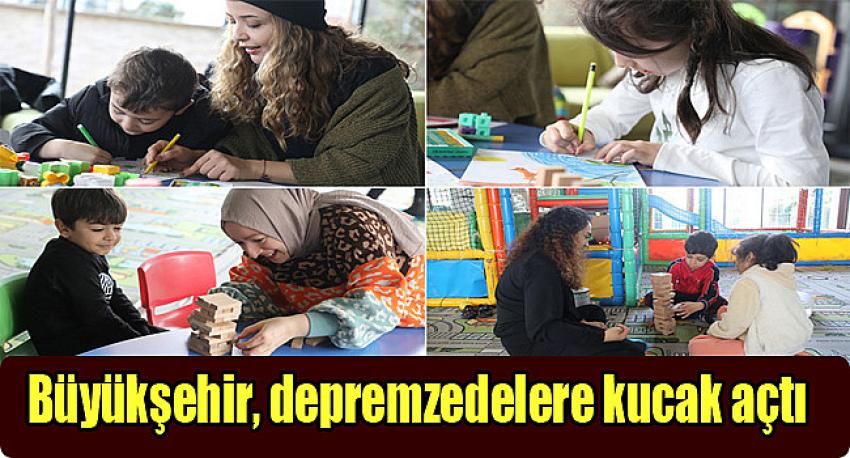 Depremzedelerin acılarına ortak olan ve bir nebze de olsa yaralarına merhem olmaya çalışan Büyükşehir, Kahramanmaraş başta olmak üzere 10 ilden gelen misafirlerin tüm ihtiyaçlarını düşünüyor. Depremzedelere 3 öğün yemek, 7/24 saat sıcak su, çay, kahve, kişisel temel ihtiyaç malzemeleri, ara öğün ve kıyafet gibi gereksinimlerini temin eden Büyükşehir ekipleri, çocukların da eğlenebileceği pek çok etkinlik ve oyun alanı kurdu. Uzman öğretmenler eşliğinde oyun ve etkinliklerle moral ve motivasyonları yükselen çocuklar ayrıca rehabilite de oluyor.