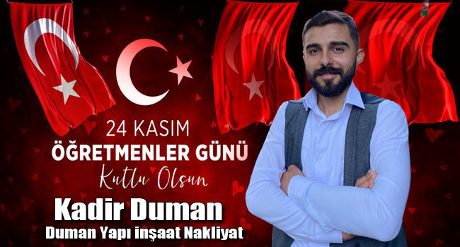 Duman Yapı İnşaat ve Nakliyat'ın sahibi Kadir Duman, yayınladığı kutlama mesajında, "Öğretmenlik emek, özveri, sabır ve hoşgörü isteyen, öğreten ve öğrenen arasında güven ve sevgi ilişkisine dayanan en onurlu mesleklerden biridir.