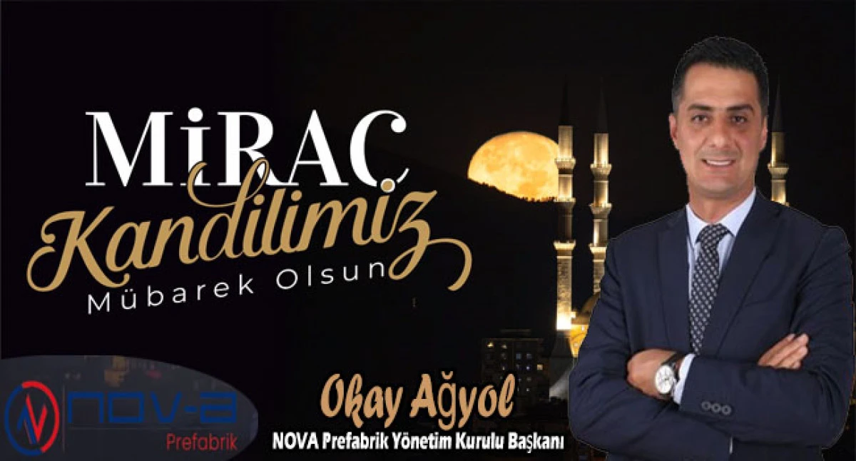 NOVA Prefabrik-Konteyner Yönetim Kurulu Başkanı Okay Ağyol'dan Peygamber Efendimiz Hz. Muhammed Mustafa’nın (S.A.V.) Yüce Allah’ın huzuruna kabul edildiği, ilahi hikmetlerle tecelli eden Miraç Kandili dolayısıyla bir kutlama mesajı yayımladı.
