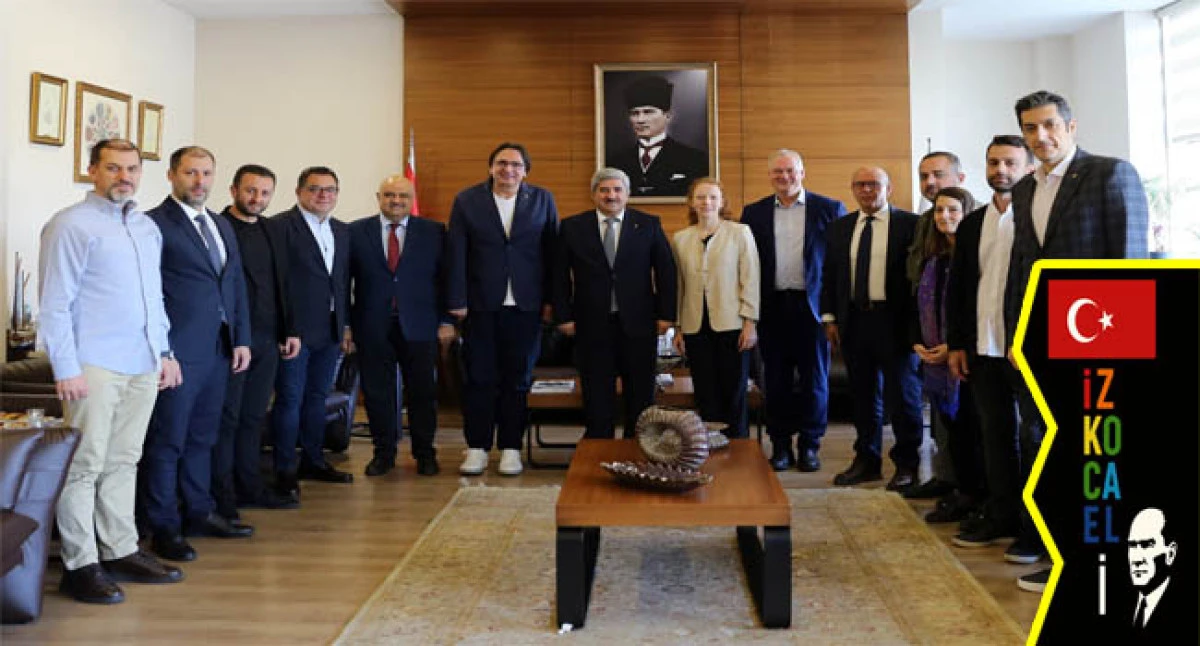 Lastik-İş Sendikası Genel Başkanı Alaaddin Sarı, sendikanın uluslararası üst örgütü IndustriALL Küresel Sendika’nın Genel Sekreter Yardımcısı Kemal Özkan, Otomotiv Direktörü Georg Leutert, Proje Koordinatörü Zeynep Ekin Aklar, Almanya Sektörel Diyalog Proje Müdürü Ann-Kathrin Schewe ve Lastik-İş Sendikası Uluslararası İlişkiler Uzmanı Cemal Hoşver, Kocaeli Ticaret Odası’nı ziyaret etti.